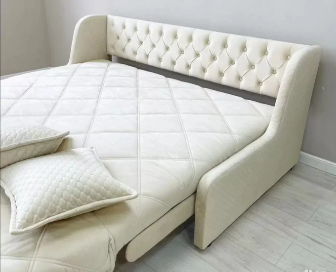 123ДИВАНА.РФ был открыт в 2019 году, собственное проектирование Диван-кровать Виктория механизм аккордеон для ежедневного сна, так как в наше современное время много людей купили квартиры, где маленькие комнаты, а так хочется ровную и без ям и перепадов кровать, и в тоже время в нужный момент сложить ее чтобы было больше место, например когда придут гость.